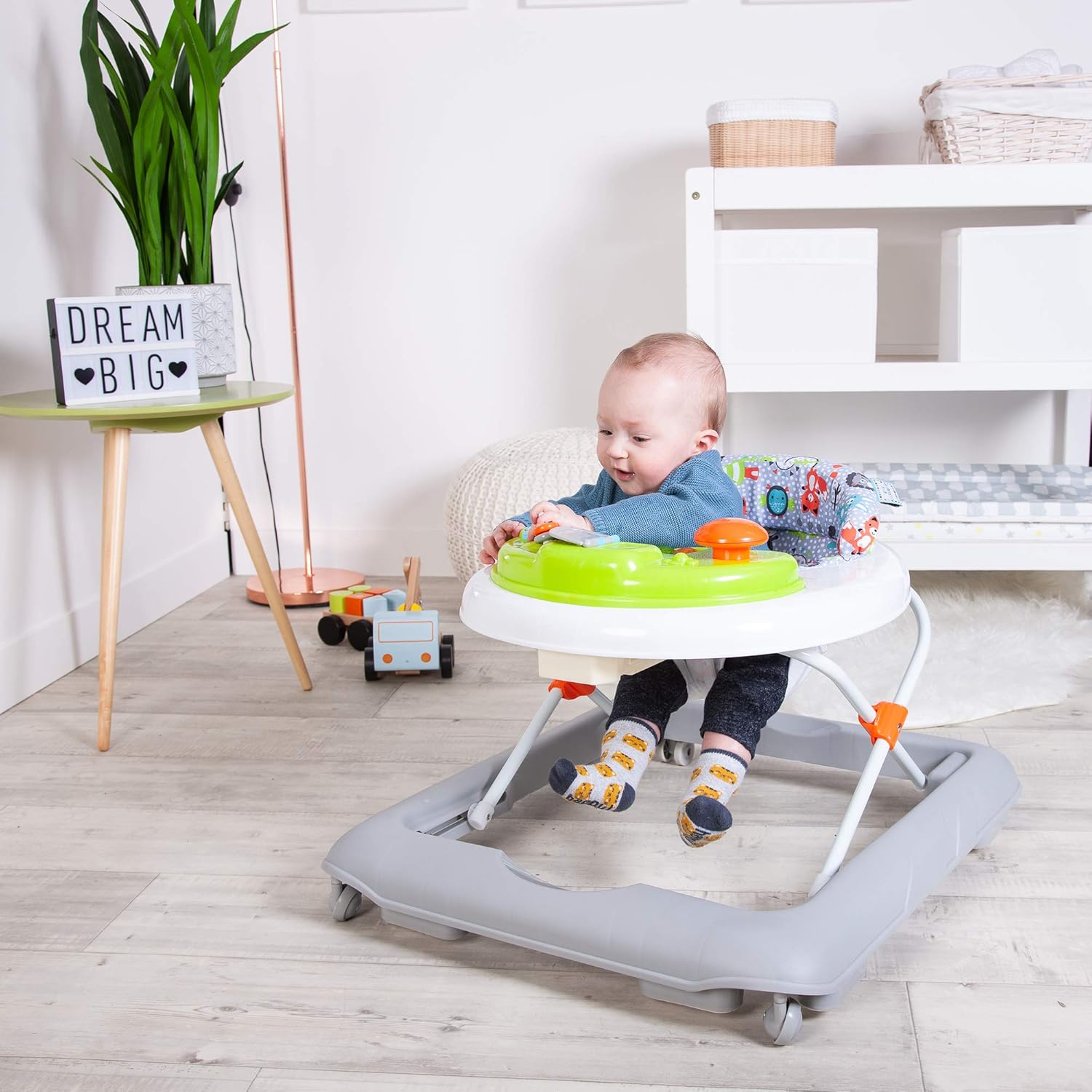 Red kite musical baby go round jive walker. Suitable from 6 months The Baby Go Round Jive features a three-height adjustable frame which allows your baby to grow with the walker and achieve those all-important first steps. Suitable from 6 months The Baby Go Round Jive features a three-height adjustable frame which allows your baby to grow with the walker and achieve those all-important first steps. The Jive includes an electronic activity tray that has been designed to engage and entertain little ones.